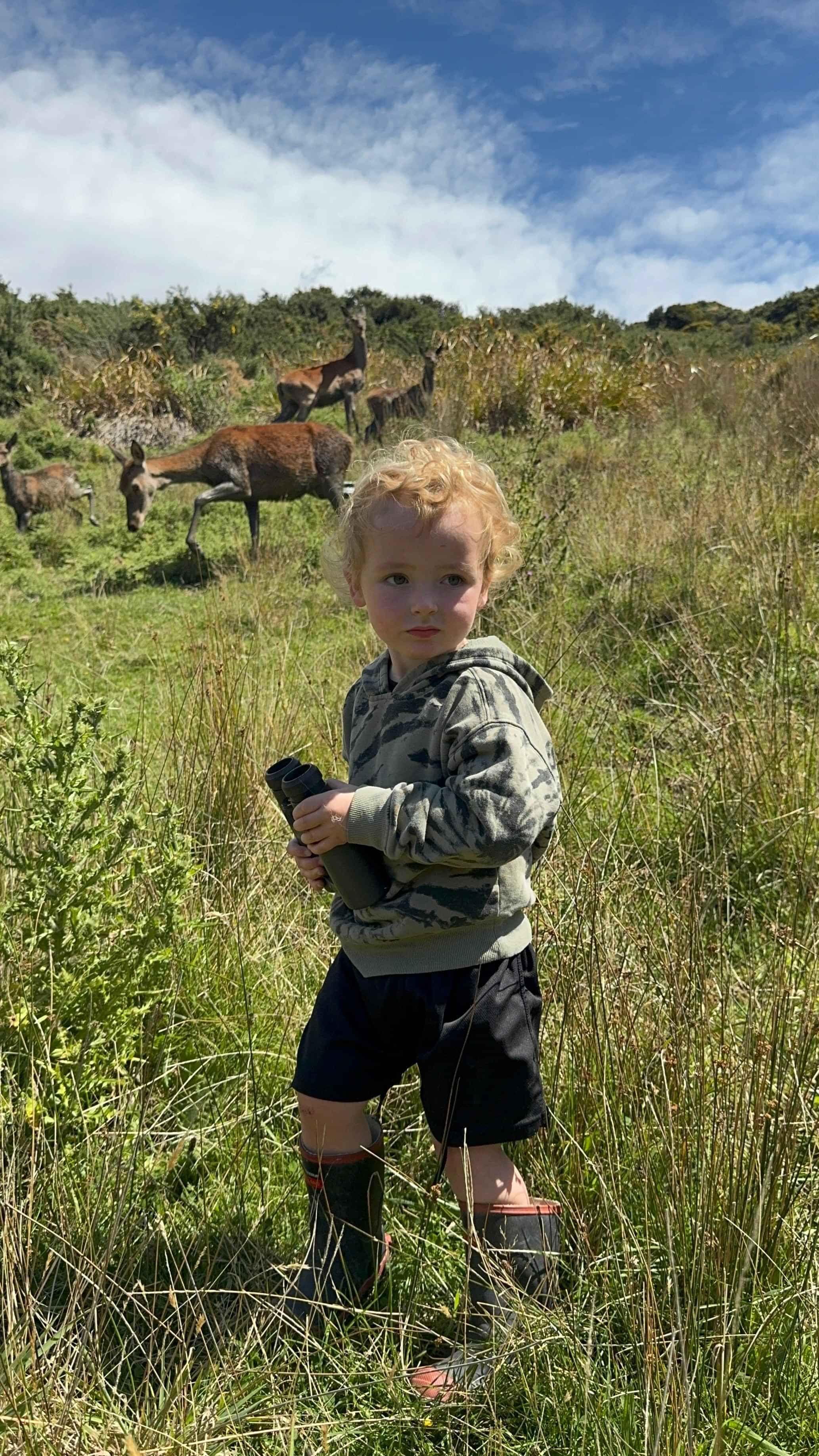 William always makes sure to point out the deer to you! He is the youngest and most fearless member of the team. He loves the views, being dad's copilot on the side-by-side and switching his toy binoculars with dad's real ones.